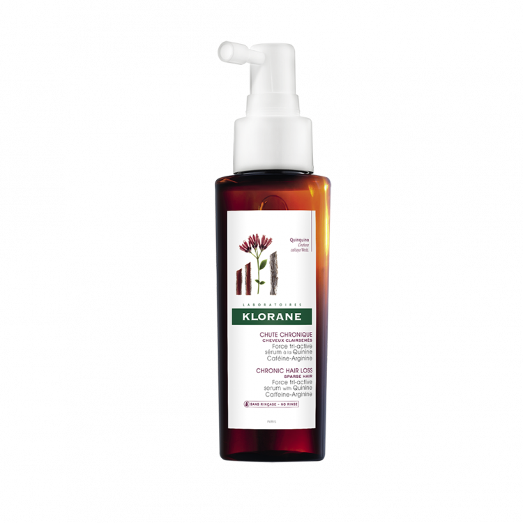 Klorane Capilar Força Tri-Activa para cabelos com queda crónica favorece o crescimento do cabelo, ficando forte e resistente a partir da raíz, durante mais tempo. Textura não gordurosa e não colante.