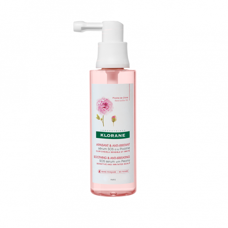 Klorane Capilar Sérum SOS Peónia para cabelos com couro cabeludo sensível e irritado reduz as sensações de irritação e acalma o couro cabeludo de forma duradoura. Fórrmula de água fresca e sem enxaguar