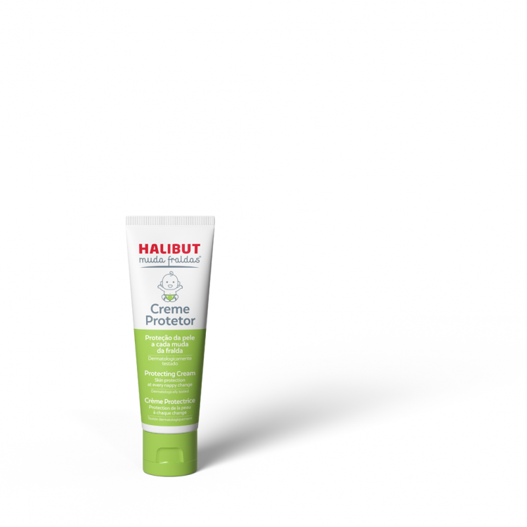 HALIBUT MUDA FRALDAS® Creme Protetor está indicado na proteção da assadura da fralda. Contém na sua formulação óxido de zinco, óleo de girassol, e vitaminas A e E.