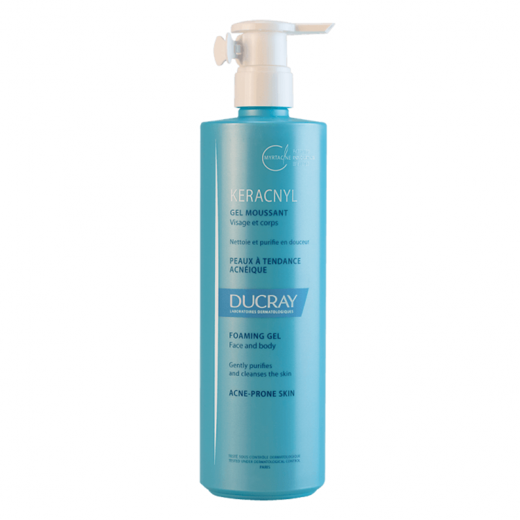 Keracnyl Gel Espuma limpa diariamente, com suavidade, a pele oleosa e/ou de tendência acneica. Purifica a pele em profundidade. Rosto e corpo. Sem sabão
