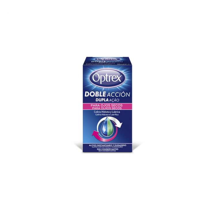 Optrex Colírio Dupla Ação Olhos Secos tem uma fórmula dupla ação sem conservantes especialmente desenvolvida para hidratar os olhos de forma instantânea e lubrificar para um alívio duradouro. Pode ser utilizado com lentes de contacto. Adequado para uso di