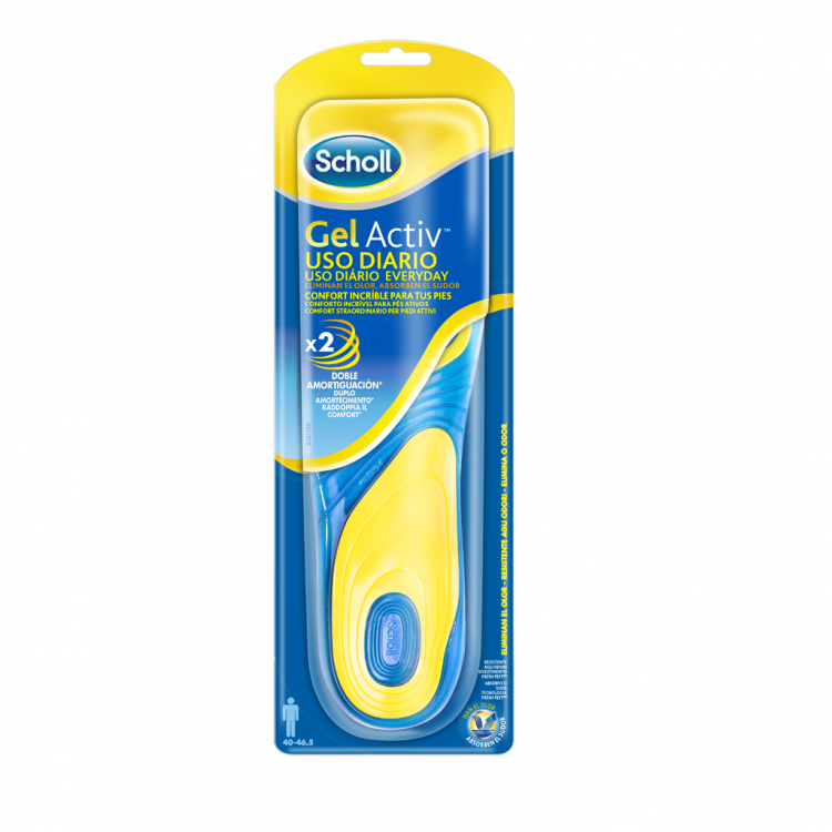 As palmilhas Scholl GelActiv™proporcionam uma absorção dos impactos e uma proteção superior quando comparada com uma não utilização. A forma das palmilhas ajuda a reduzir a pressão excessiva a que submetemos os nossos pés através da tecnologia GelActiv™.