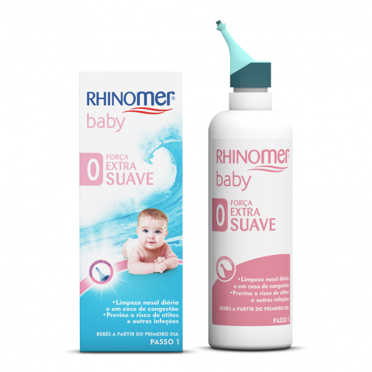 Rhinomer Baby Força Extra Suave é um spray nasal à base de água do mar 100% natural indicado para a higiene nasal dos bebés. Higiene diária e prevenção ativa: limpa e humidifica as fossas nasais do seu bebé, eliminando elementos indesejáveis como pó, alergenos, vírus e bactérias; o seu uso regular protege eficazmente contra constipações e rinofaringites e outras complicações. Casos de excesso de mucosidade e constipações: suaviza o muco, facilitando a sua eliminação ou a utilização de um aspirador nasal - a eliminação das mucosidades previne a ocorrência de complicações como otites, bronquites e outras situações muito frequentes em bebés; ajuda de forma natural em caso de congestão nasal devida a constipações. Humidificação das fossas nasais no caso de secura ambiental.